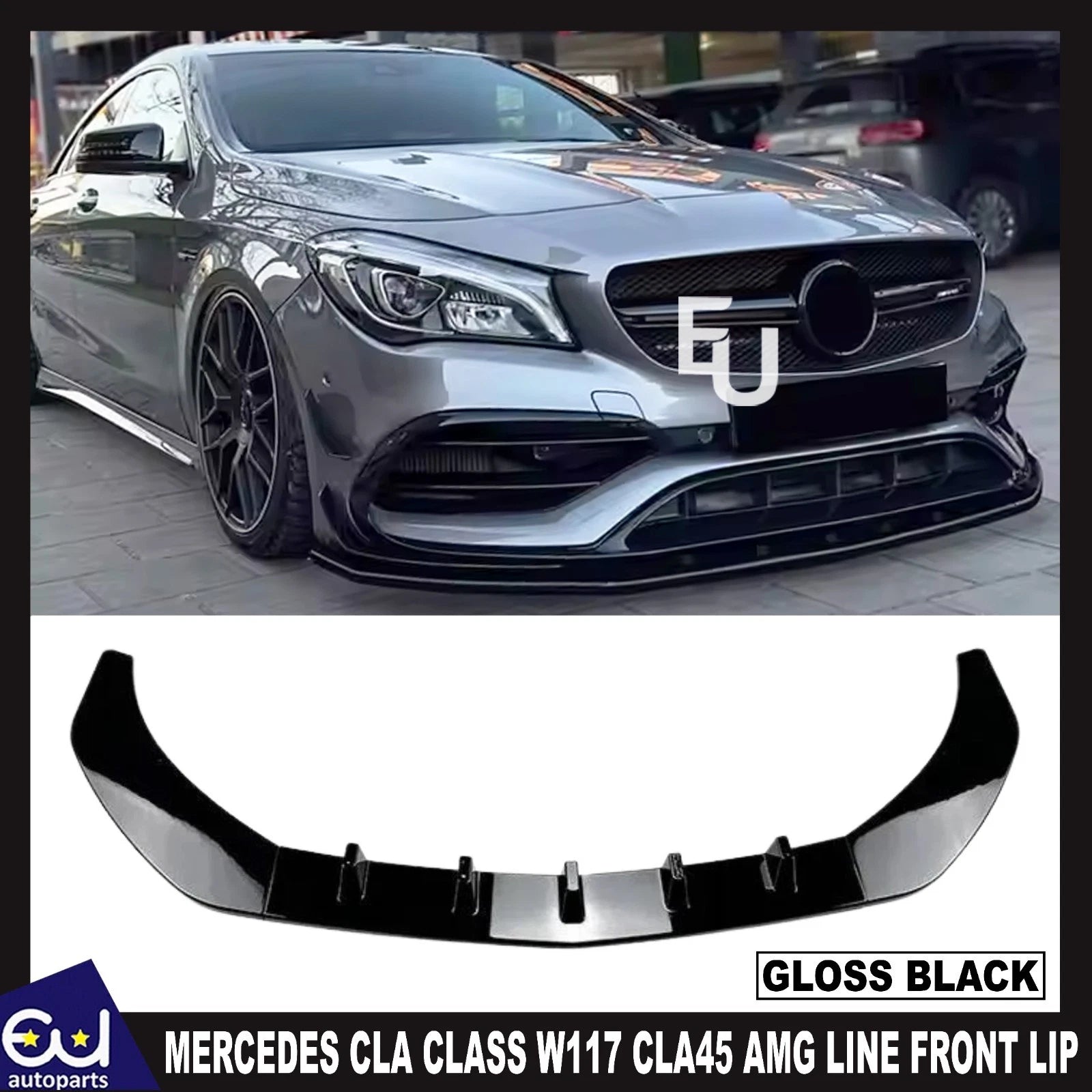 FOR MERCEDES CLA CLASS W117 CLA45 AMG LINE FRONT SPLITTER SPOILER LIP GLOSS BLACK 16-19