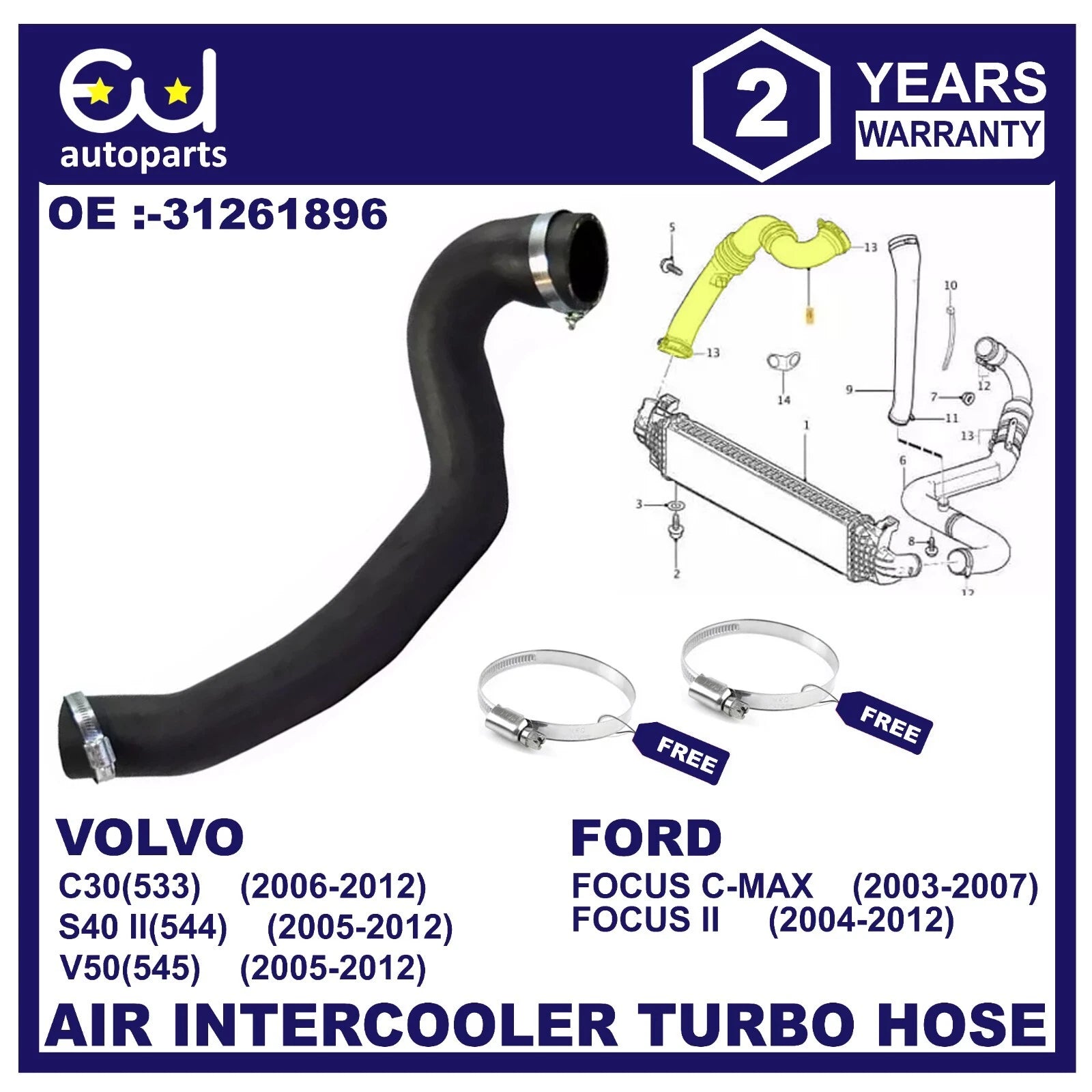 - COMPETIBLE WITH VOLVO C30(533)(2006-2012),S40 II(544)(2005-2012),V50(545)(2005-2012). FORD FOCUS C-MAX(2003-2007),FOCUS II(2004-2012)