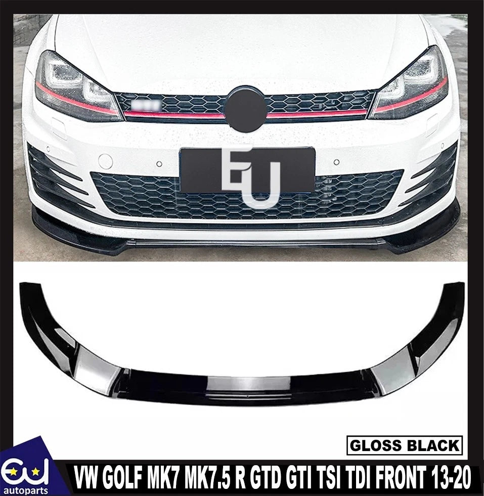 VW Golf MK7 MK7.5 R GTD GTI TSI TDI Front Splitter Spoiler Lip Gloss Black 2013–2020