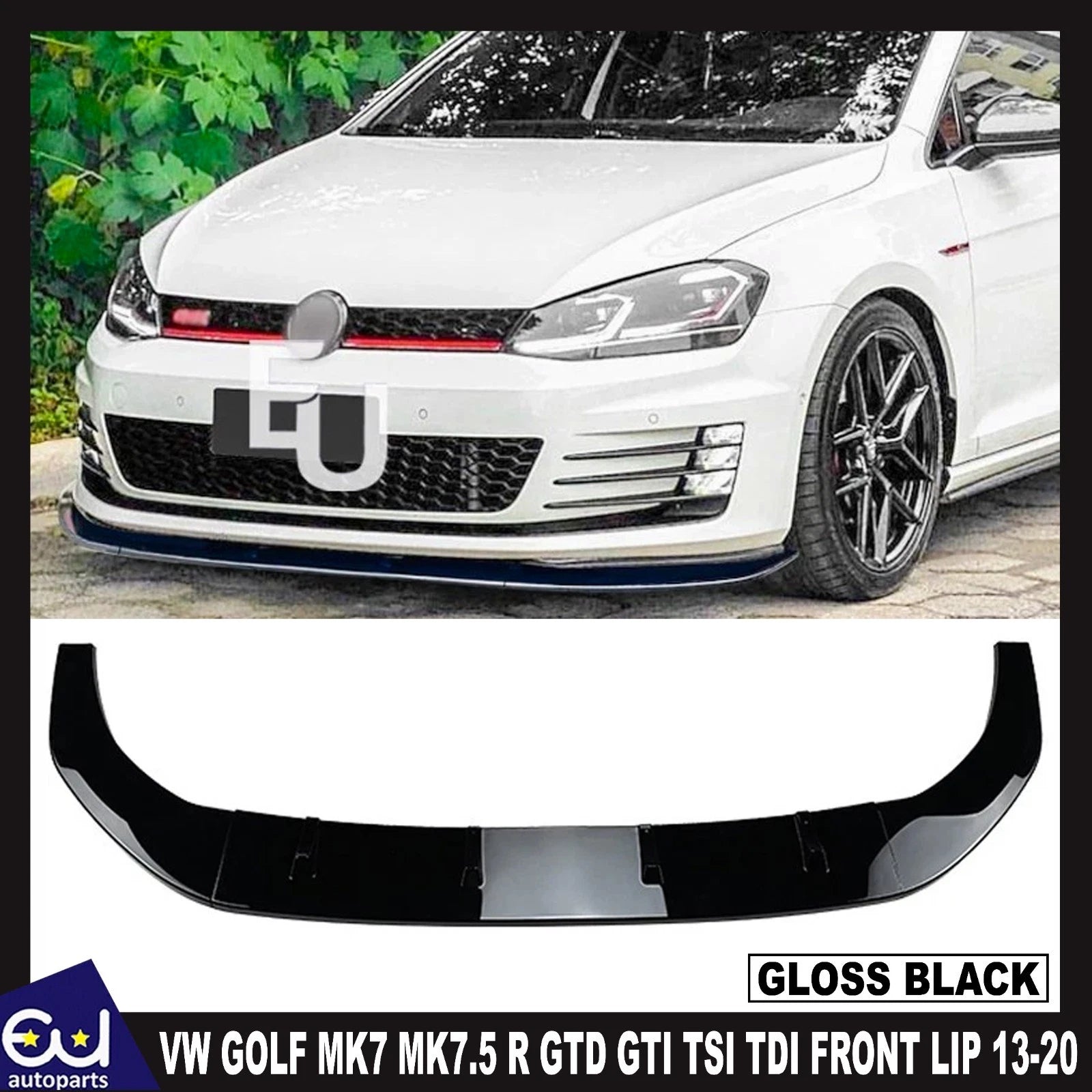 Upgrade the look of your VW Golf MK7 / MK7.5 with this premium Front Splitter Spoiler Lip in Gloss Black. Designed to perfectly fit the 2013–2020 Golf R, GTI, GTD, TSI, and TDI models, this front lip adds a sleek, aggressive, and sporty style to your vehicle while enhancing aerodynamics.