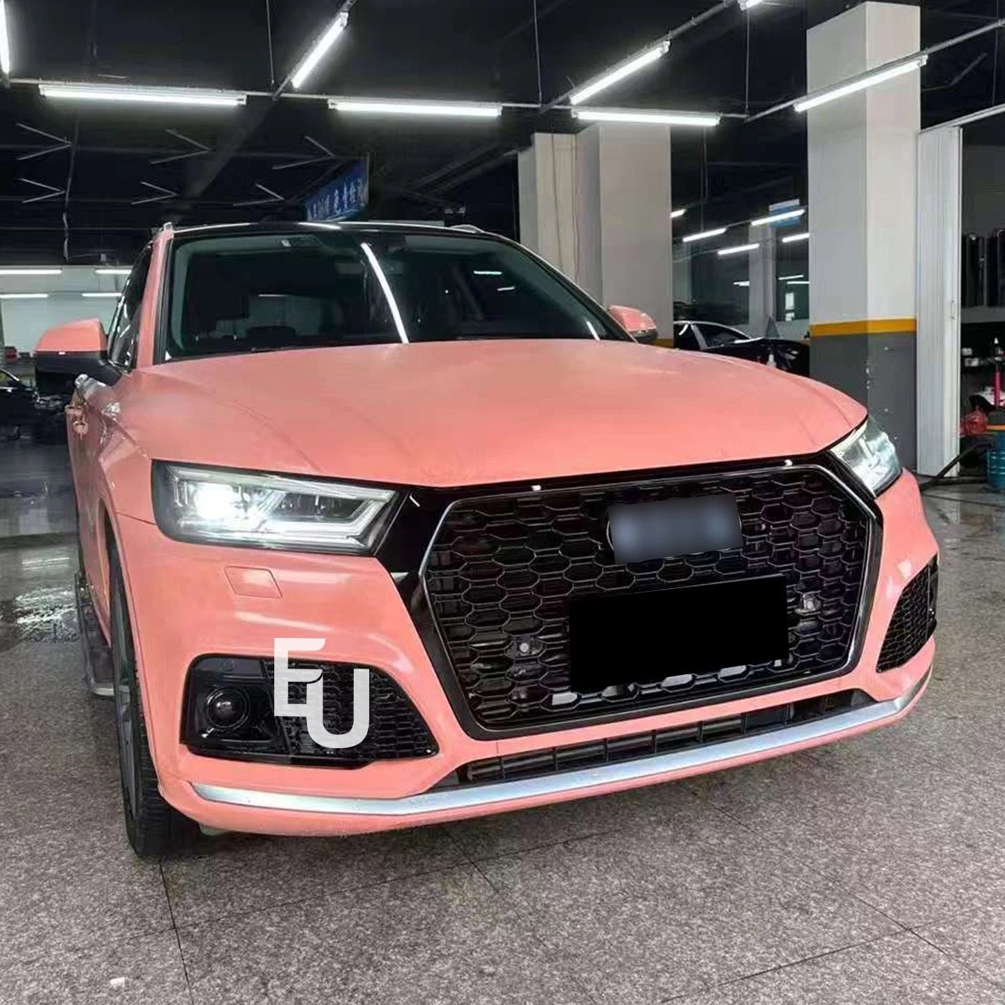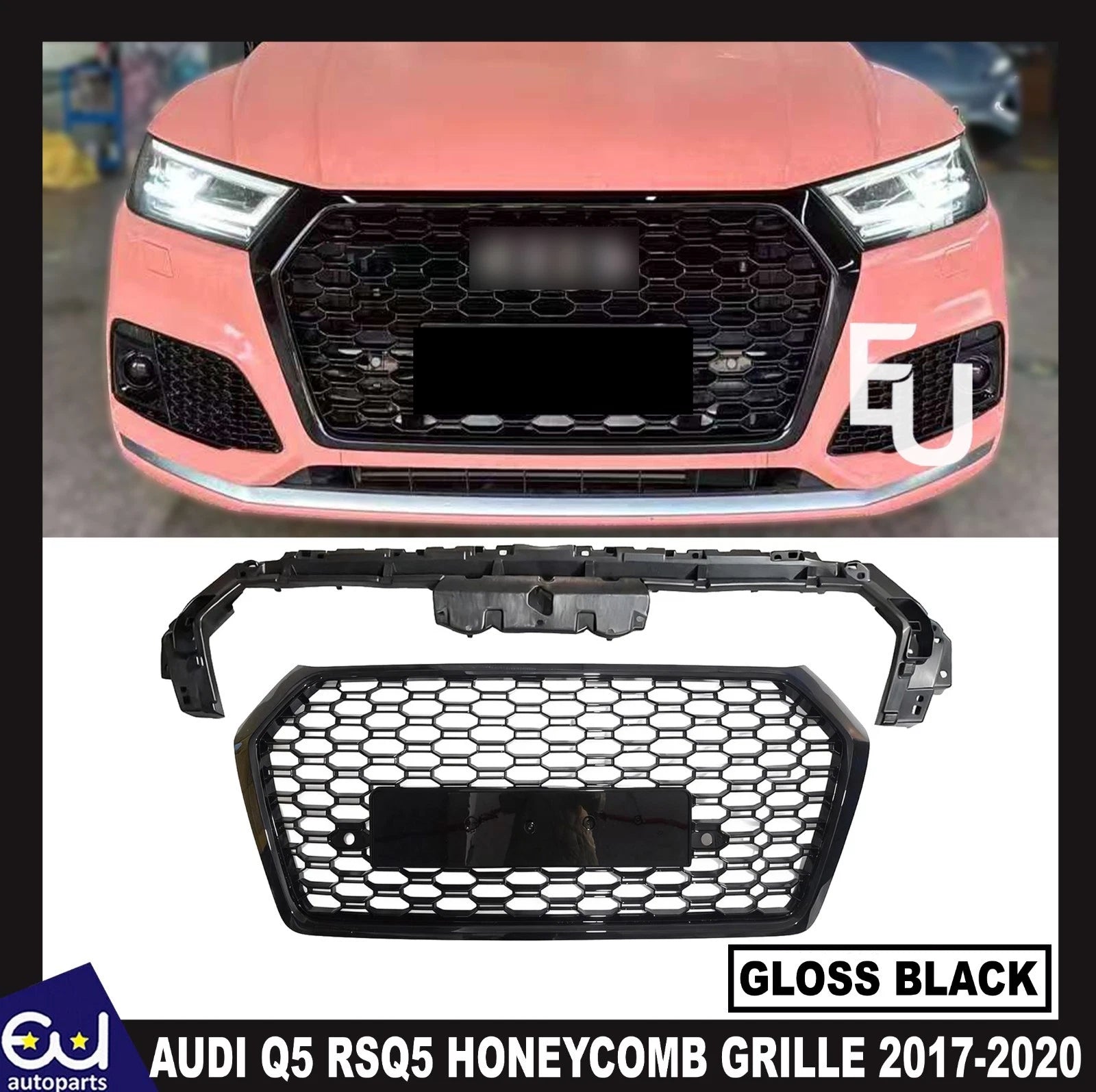 - Upgrade the front of your Audi Q5 with this RSQ5 style front honeycomb grille in gloss black. Designed to perfectly fit 2017–2020 models, this grille gives your vehicle a bold, sporty, and aggressive look while maintaining a sleek, premium finish.
